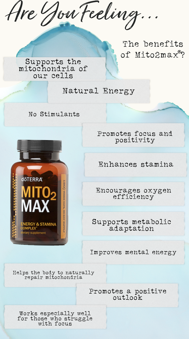 Everybody can relate to feeling sluggish and dragging through the day, just waiting for it to end. This is a popular dōTERRA supplement, Mito2Max and helps support you for whatever your day has in store for you. This is for you especially of you struggle with low energy. Take in the morning or early afternoon for optimal results. Also these are excellent if you are seeking to reduce or diminish your caffeine intake.